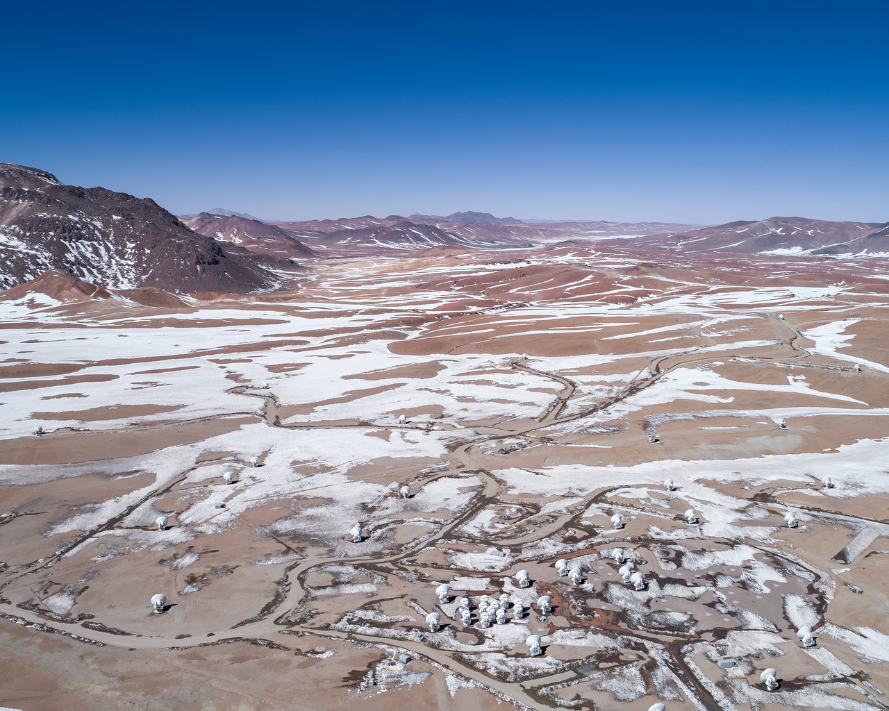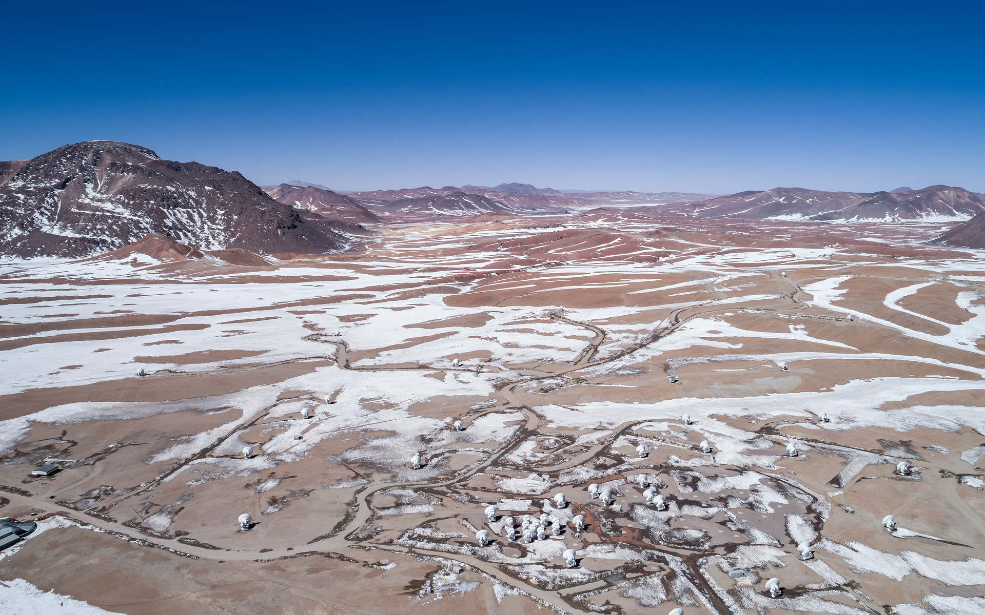 ALMA is a revolutionary astronomical telescope, comprising an array of 66 giant 12-metre and 7-metre diameter antennas observing millimetre and submillimetre wavelengths. The array is situated on the breathtaking Chajnantor Plateau in the Chilean Andes, at an altitude of around 5000 metres. Chajnantor is the highest major observatory site in the world, and the atmosphere above the plateau is the driest in the world, with the exception of Antarctica.