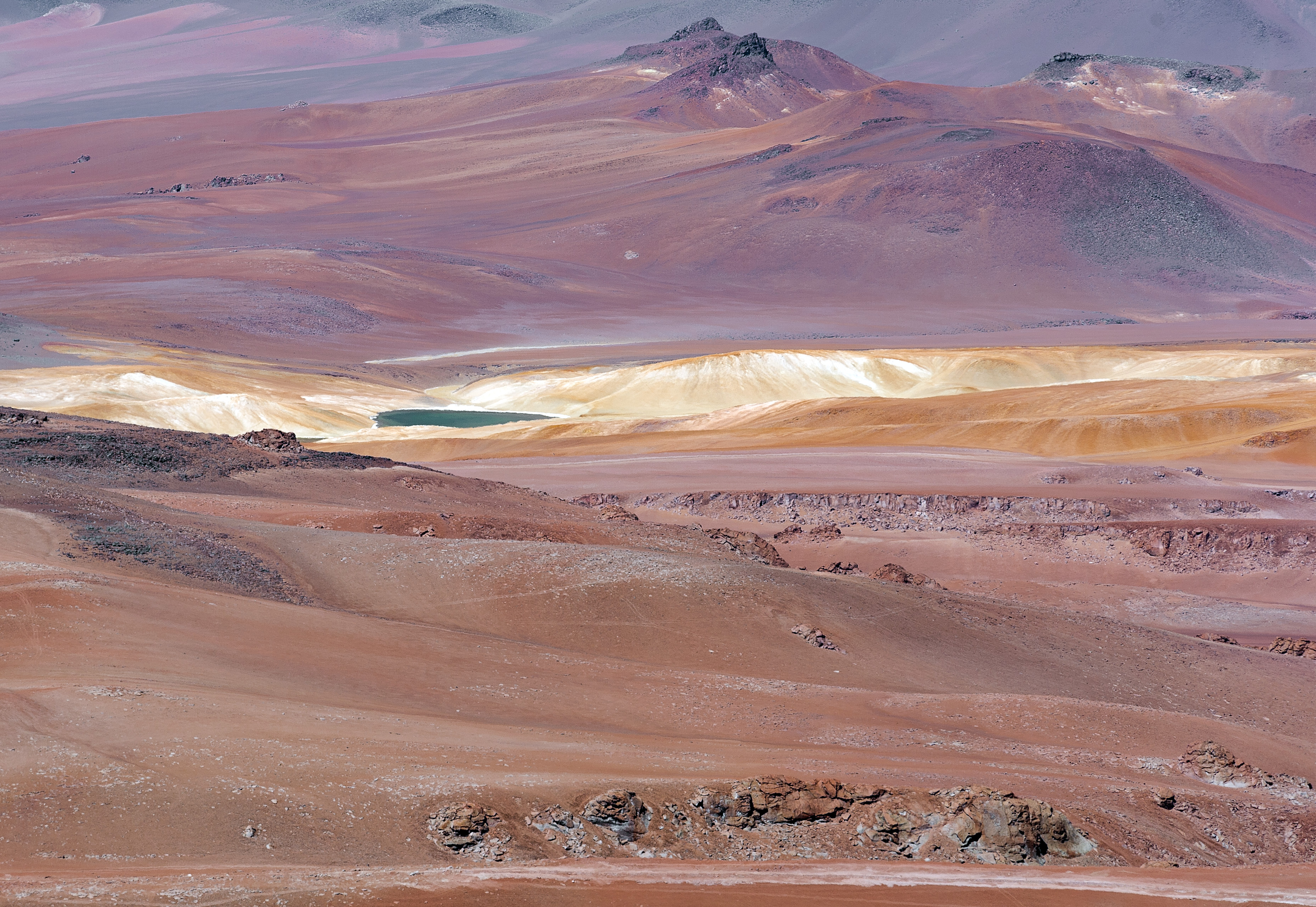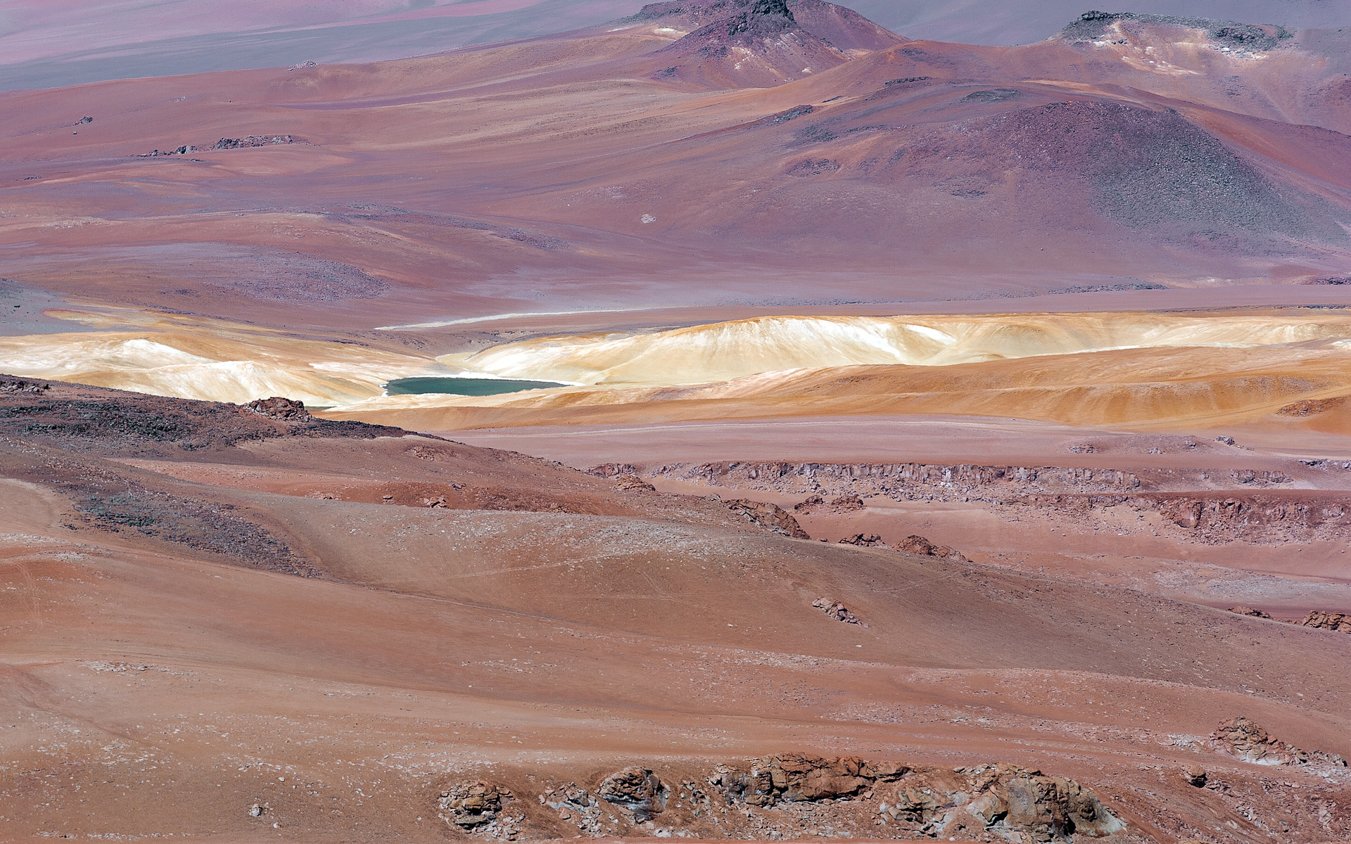 This image captures the fascinating charm of Chilean Andes surrounding the Chajnantor plateau, where the Atacama Large Millimeter/submillimeter Array (ALMA) is located. The extremely dry atmospheric conditions allow visitors to appreciate the multi-coloured streaked landscape in great detail.