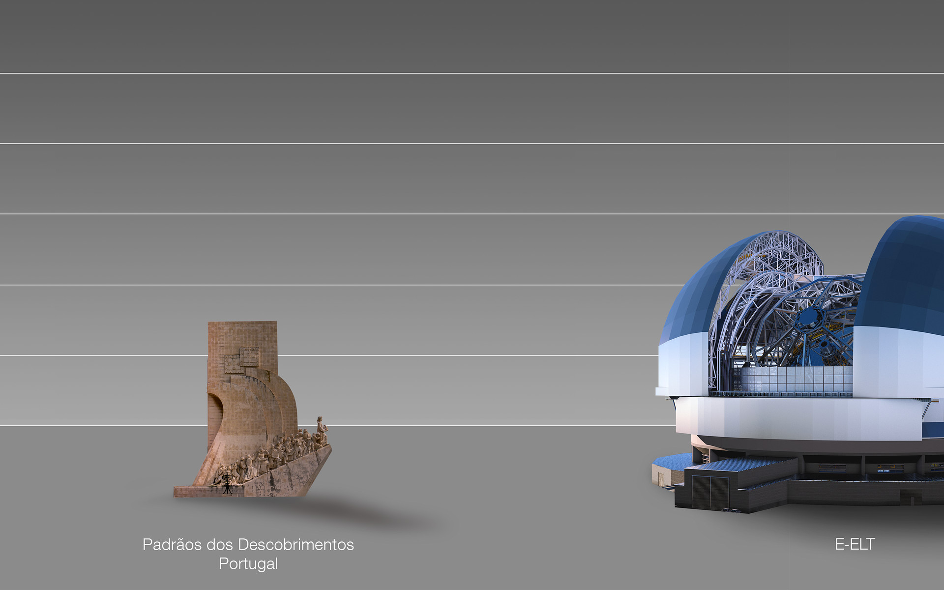 This artist's impression compares the ELT to the Padrão dos Descobrimentos in Lisbon, Portugal.