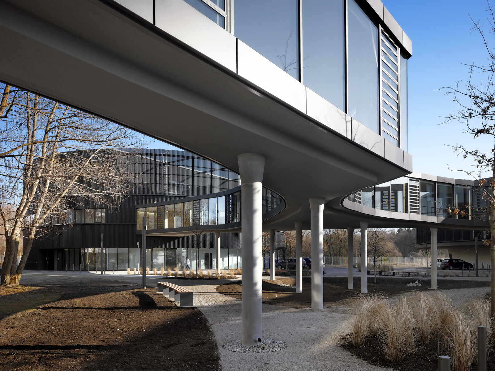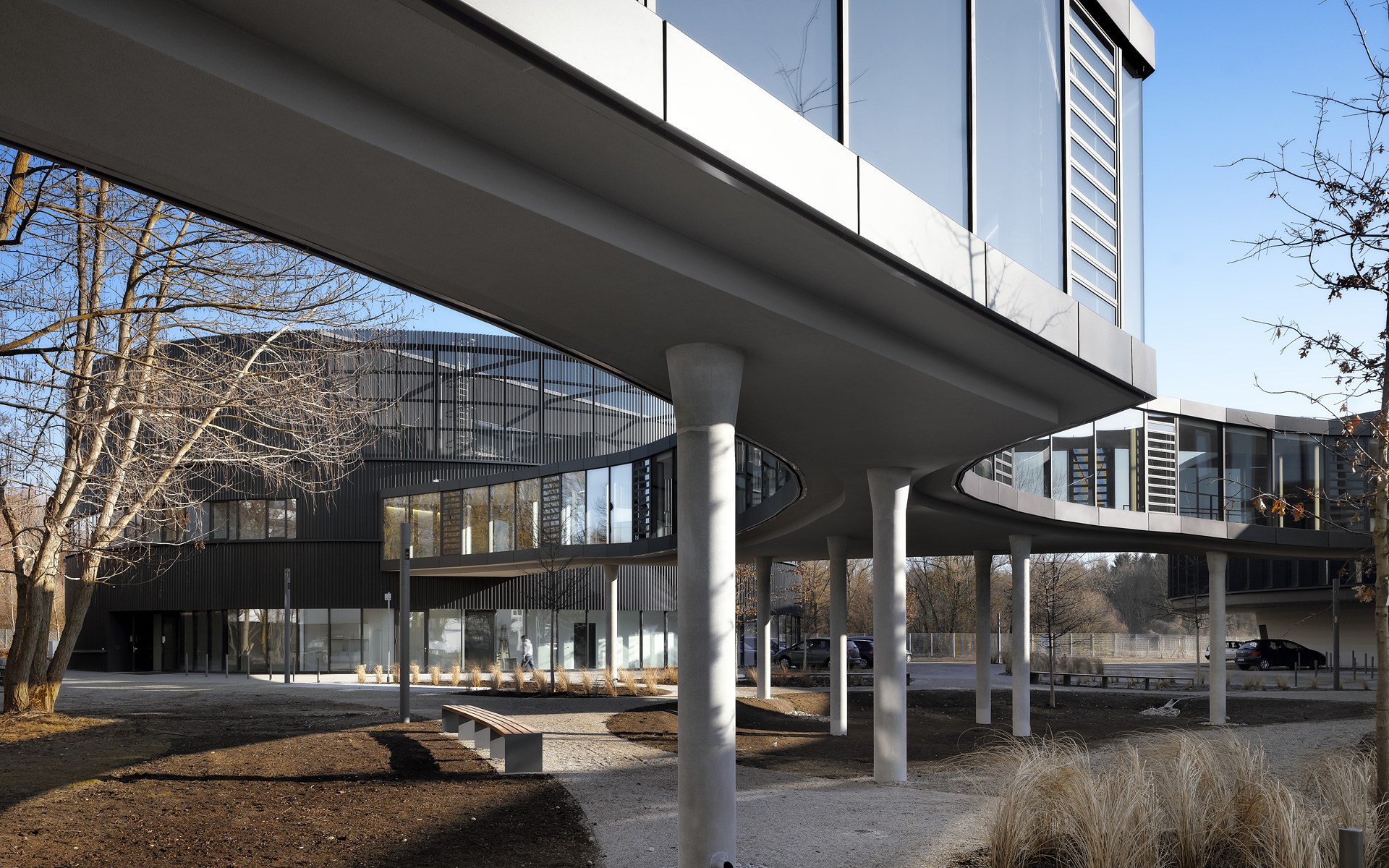 A bridge is connecting the two new buildings of the ESO Headquarters in Garching with the original one.