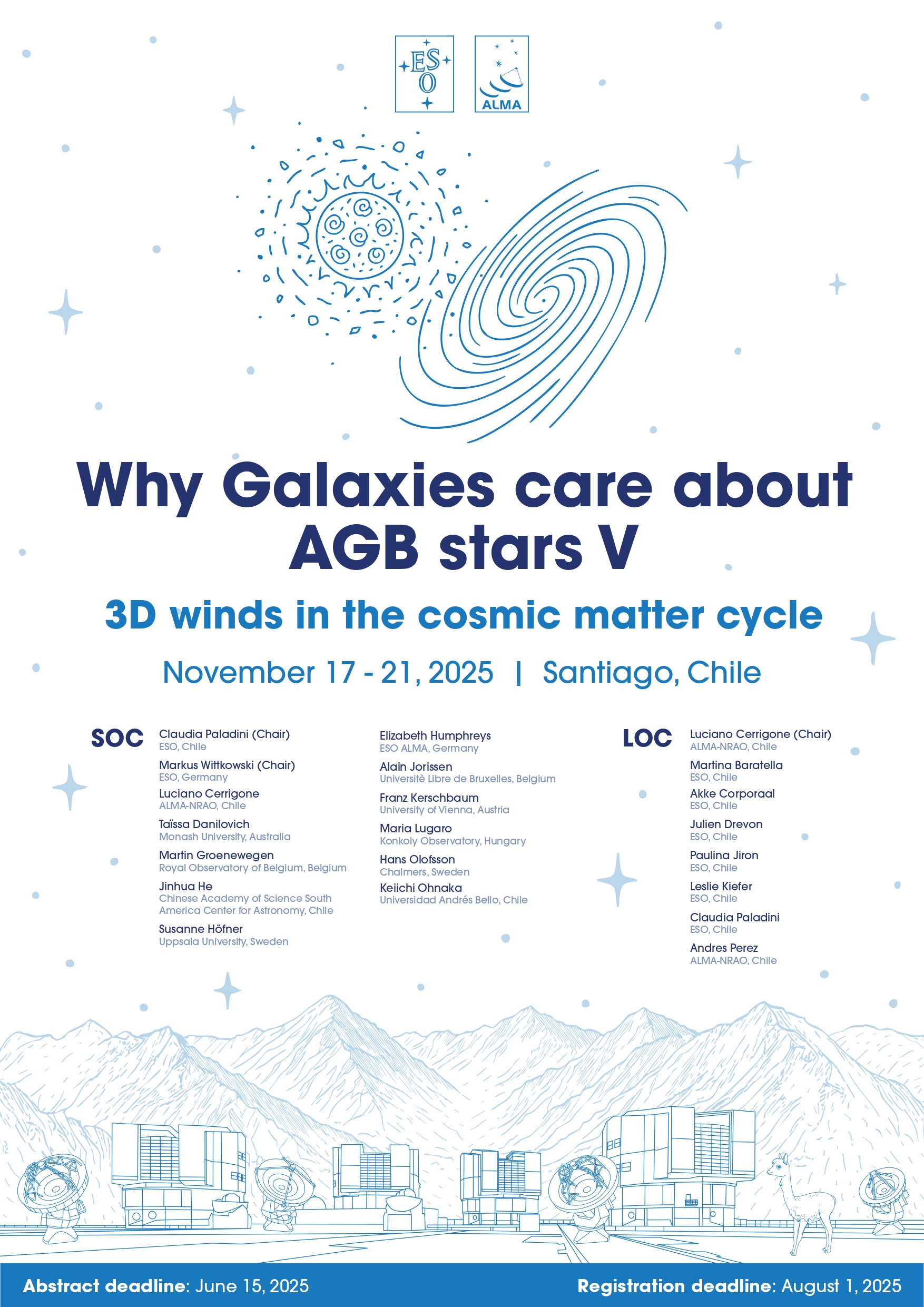 The meeting will take place in Chile, home to some of the world’s most advanced astronomical facilities, fostering interactions between local and international researchers. Join us to shape the future of AGB research and its connection to galaxy evolution!