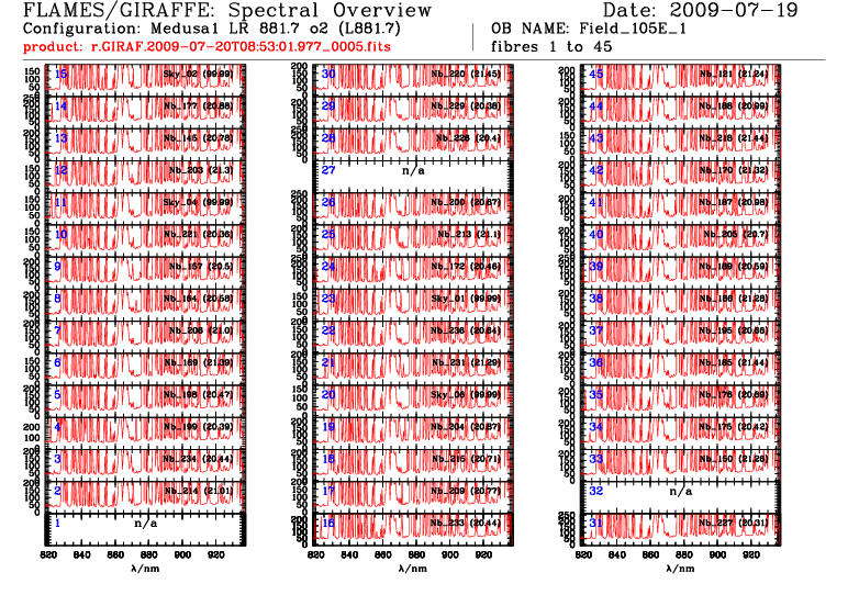 [only for Medusa1/2] spectral closeups: each single fibre spectrum is displayed, with target names and magnitudes as read from the user-provided OzPoz table. These plots are available for Medusa1/2 only. There are three in total, covering fibres 1-135.
