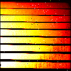 This is the raw file monitor with screenshots of raw calibration data. There is one page per raw data type. All files taken in the same template are displayed in the same row. The number of displayed files per template is limited depending on raw type and instrument. Files which are not displayed have a placeholder ("n/c", i.e. "not configured"). Files that could not be downloaded from the archive are marked as "not yet available". Use the 'jump' button to jump to a specific set of raw displays, labelled by their AB name. Click on the thumbnails to get a larger display together with histograms and cuts. Find more information in the help. Special information for CRIRES raw files: