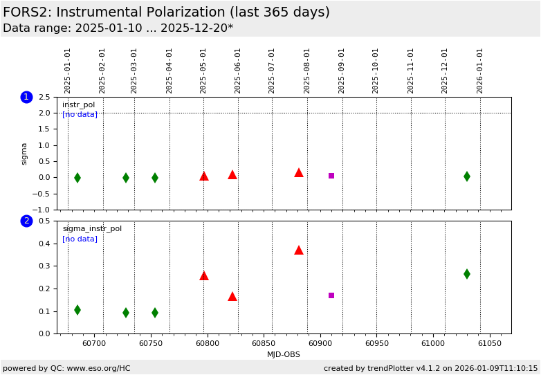 Only data with an error below 0.5 in instrumental polarization are trended.