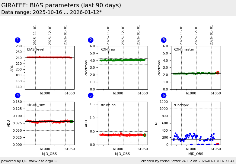 This is the trending plot for the GIRAFFE QC parameters derived from BIAS frames.