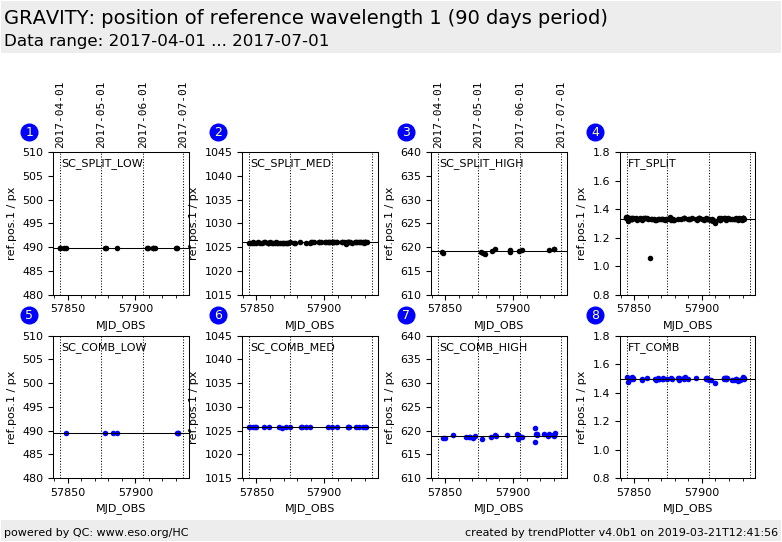 position of reference wavelength 1, Fringe Tracker (FT) detector, COMBINED polarisation |