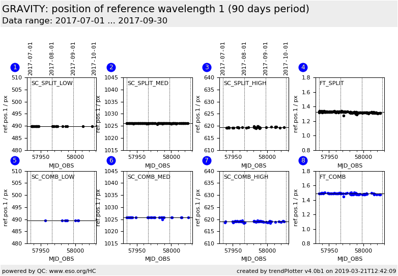 position of reference wavelength 1, Fringe Tracker (FT) detector, COMBINED polarisation |