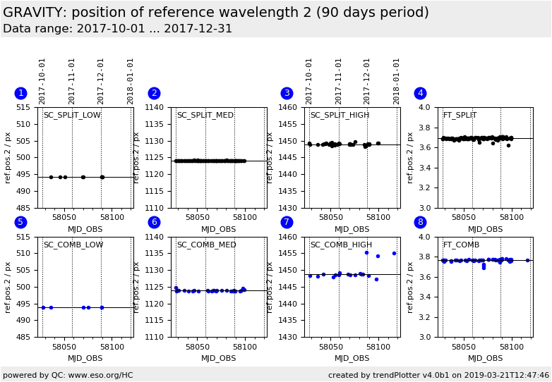 position of reference wavelength 2, Fringe Tracker (FT) detector, COMBINED polarisation |