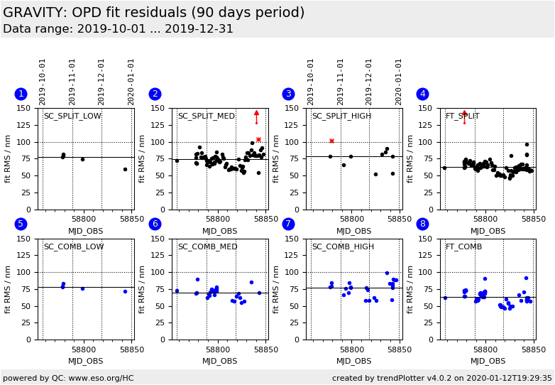 RMS of fit to metrology, Fringe Tracker (FT) detector, SPLIT polarisation |