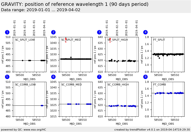 position of reference wavelength 1, Fringe Tracker (FT) detector, COMBINED polarisation |