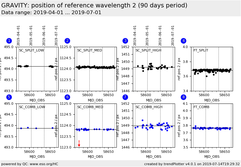 position of reference wavelength 2, Fringe Tracker (FT) detector, COMBINED polarisation |