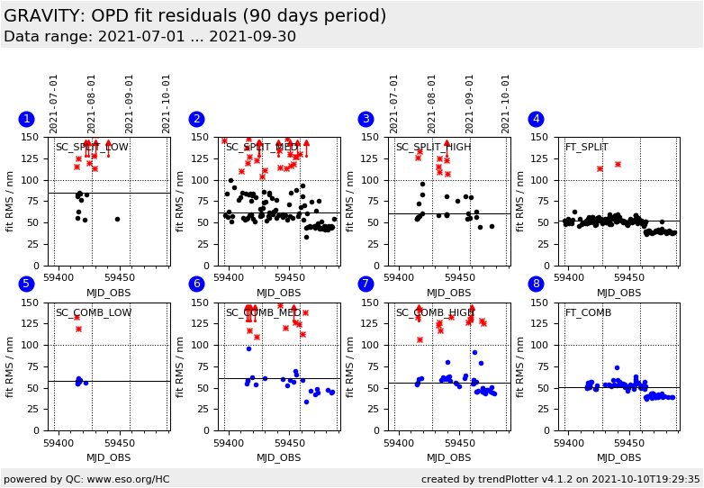 RMS of fit to metrology, Fringe Tracker (FT) detector, SPLIT polarisation |