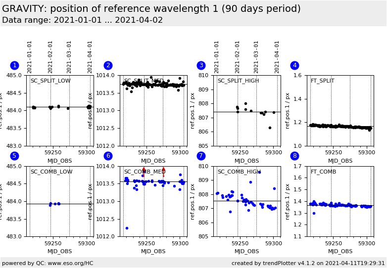 position of reference wavelength 1, Fringe Tracker (FT) detector, COMBINED polarisation |