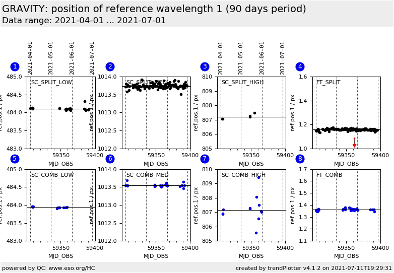 position of reference wavelength 1, Fringe Tracker (FT) detector, COMBINED polarisation |