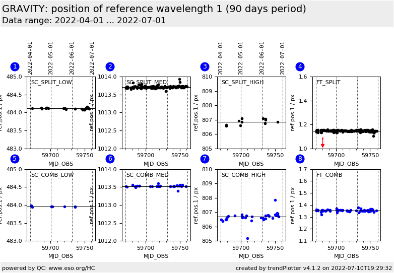 position of reference wavelength 1, Science Camera (SC) detector, SPLIT polarisation, low resolution |