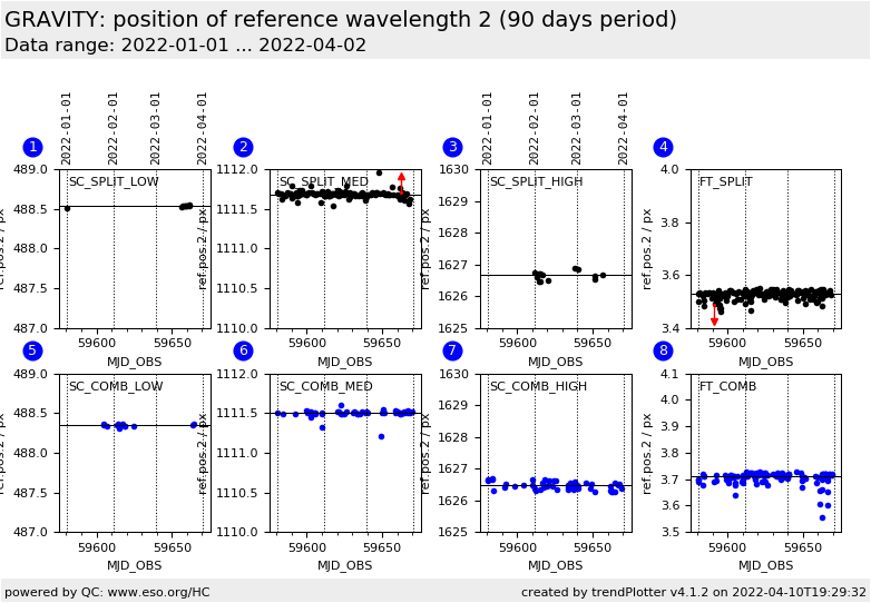 position of reference wavelength 2, Fringe Tracker (FT) detector, SPLIT polarisation |