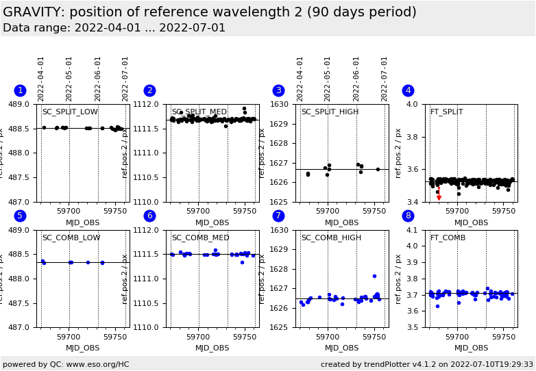 position of reference wavelength 2, Fringe Tracker (FT) detector, COMBINED polarisation |