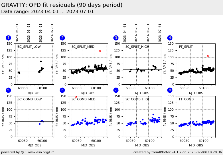 RMS of fit to metrology, Fringe Tracker (FT) detector, SPLIT polarisation |
