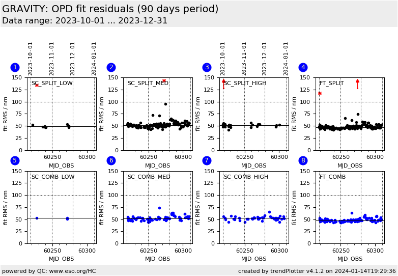RMS of fit to metrology, Fringe Tracker (FT) detector, SPLIT polarisation |