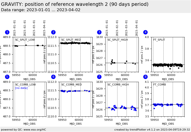 position of reference wavelength 2, Fringe Tracker (FT) detector, COMBINED polarisation |