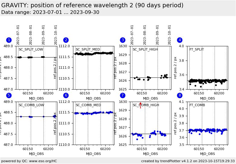 position of reference wavelength 2, Fringe Tracker (FT) detector, COMBINED polarisation |