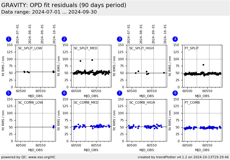RMS of fit to metrology, Fringe Tracker (FT) detector, SPLIT polarisation |