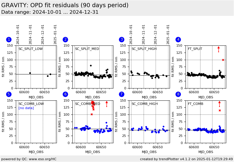 RMS of fit to metrology, Fringe Tracker (FT) detector, SPLIT polarisation |