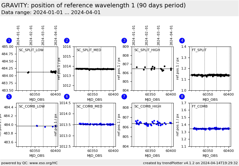 position of reference wavelength 1, Fringe Tracker (FT) detector, COMBINED polarisation |