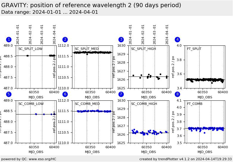 position of reference wavelength 2, Fringe Tracker (FT) detector, COMBINED polarisation |