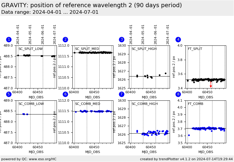 position of reference wavelength 2, Fringe Tracker (FT) detector, COMBINED polarisation |