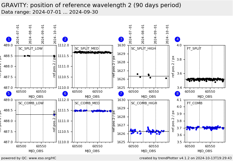 position of reference wavelength 2, Fringe Tracker (FT) detector, COMBINED polarisation |
