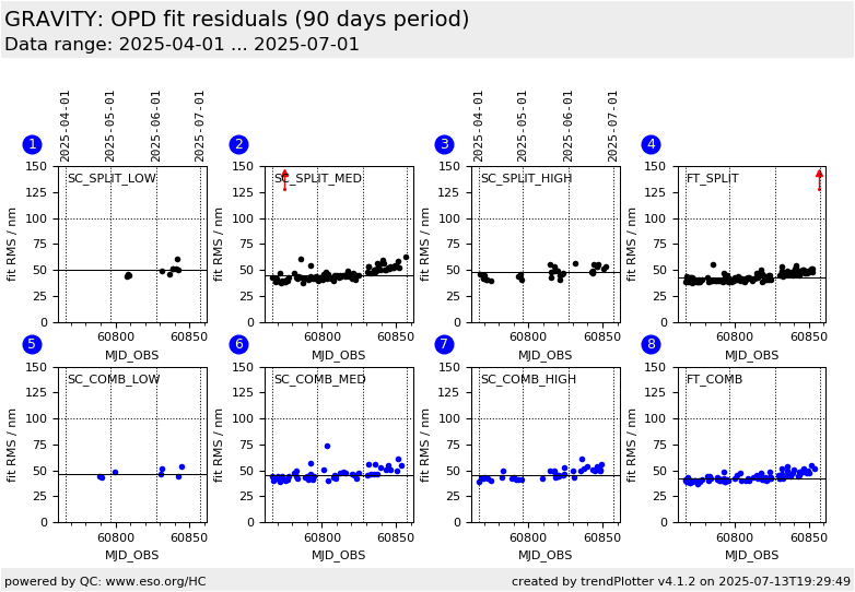 RMS of fit to metrology, Fringe Tracker (FT) detector, SPLIT polarisation |