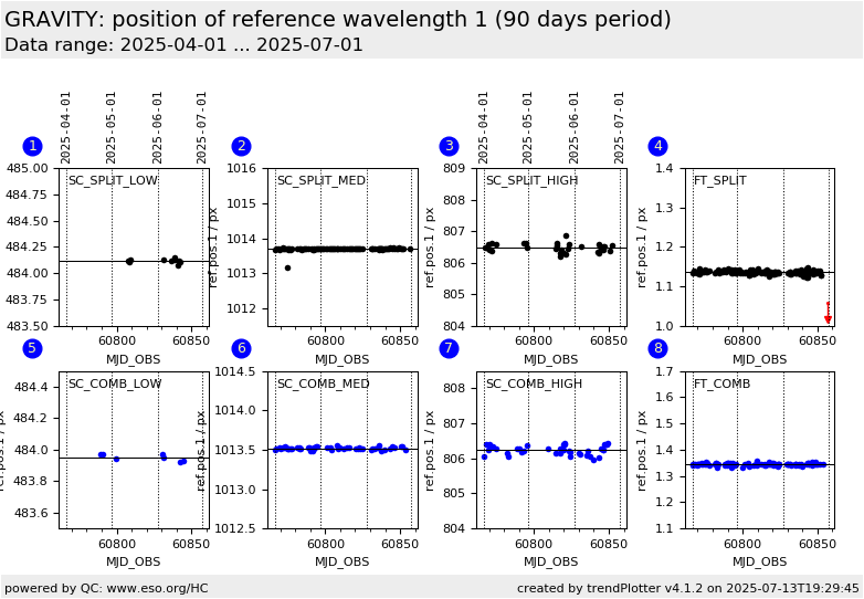 position of reference wavelength 1, Fringe Tracker (FT) detector, COMBINED polarisation |