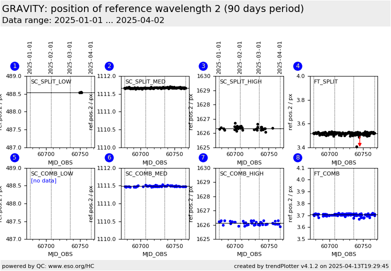 position of reference wavelength 2, Fringe Tracker (FT) detector, COMBINED polarisation |