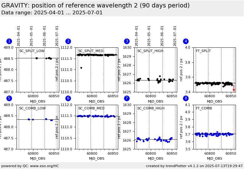 position of reference wavelength 2, Fringe Tracker (FT) detector, COMBINED polarisation |