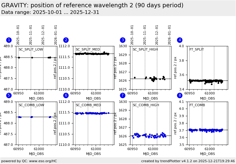 position of reference wavelength 2, Fringe Tracker (FT) detector, COMBINED polarisation |