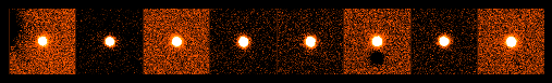 The columns describe: the position of the source in pixel (POSX, POSY), the photometric zeropoint, the integral (FLUX), the peak counts in ADU (PEAK), th residual backgorund in ADU (BGD), the FWHM along x (FWHMX) and the y-axis (FWHMY). In the example given above, no FWHMY could be derived from two of the eight sky subtracted frames. The illumination correction recipe generates two products:
