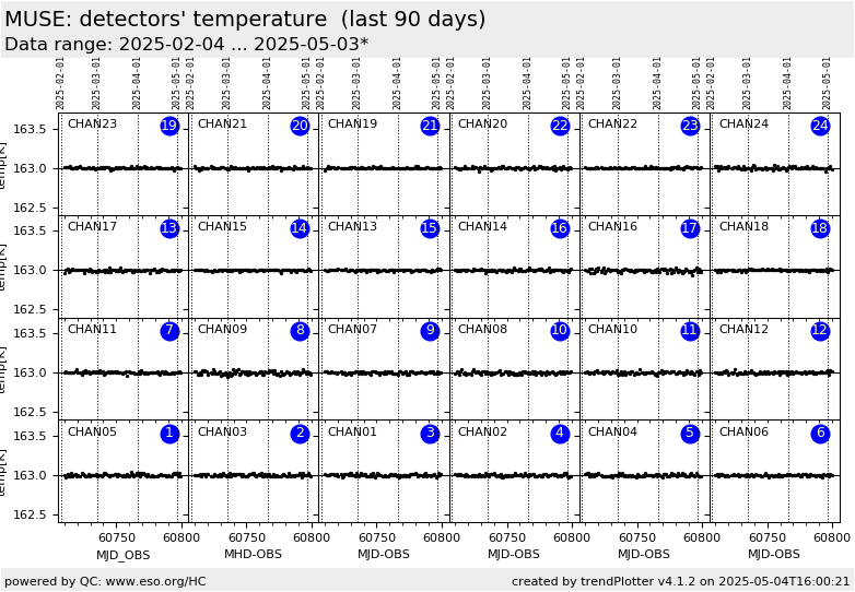 17 QC1DB MEDIAN 163 K none  90 temp_det16 this | last_yr | all detector temperature [K] for CHAN16