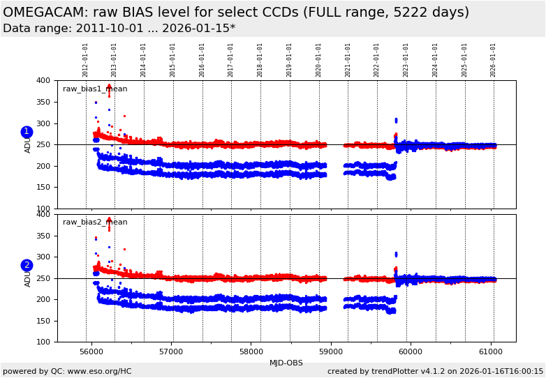 | mean level of second raw bias for the stable detector ESO_CCD_#81 (ADU) |