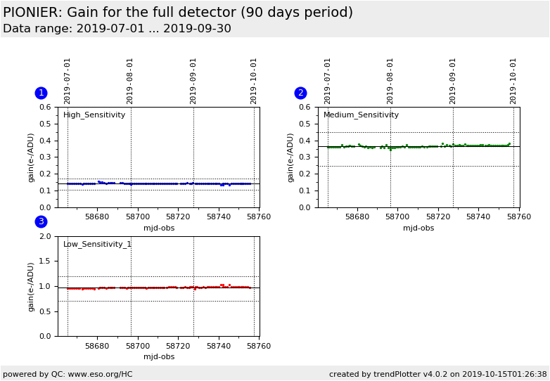 The gain is monitored for the full detector (320x255) and for the