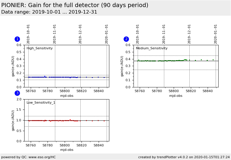 The gain is monitored for the full detector (320x255) and for the