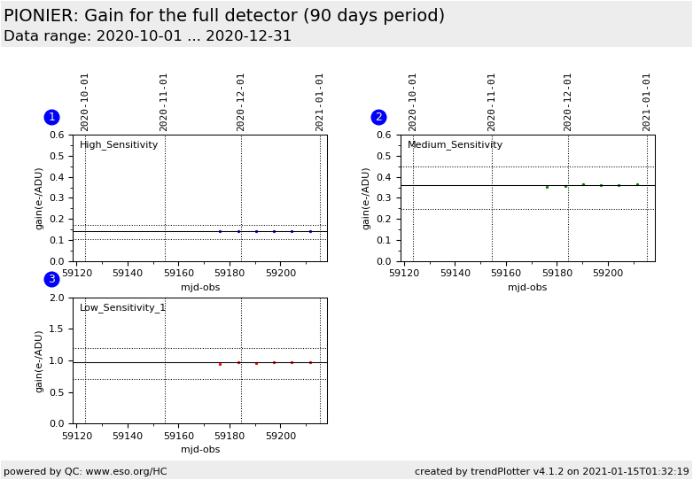The gain is monitored for the full detector (320x255) and for the
