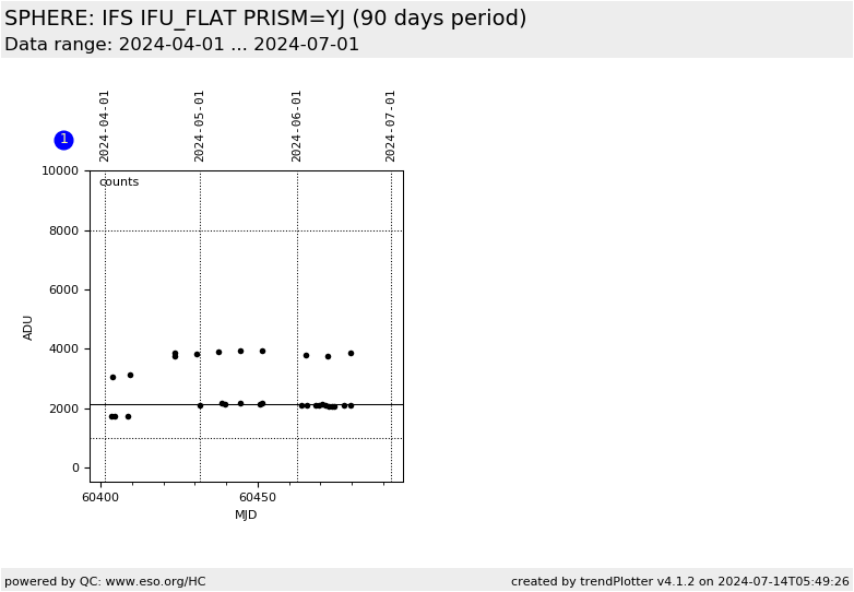 This plot shows the median counts collected with the IFU halogen lamp within DIT=1.6507260 sec