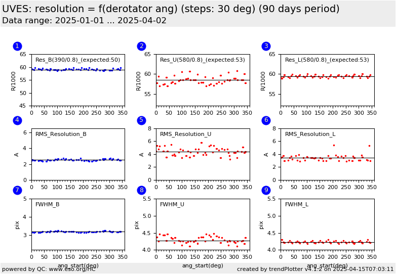 The Derotator trending plots are monitoring UVES Resolution based on QC