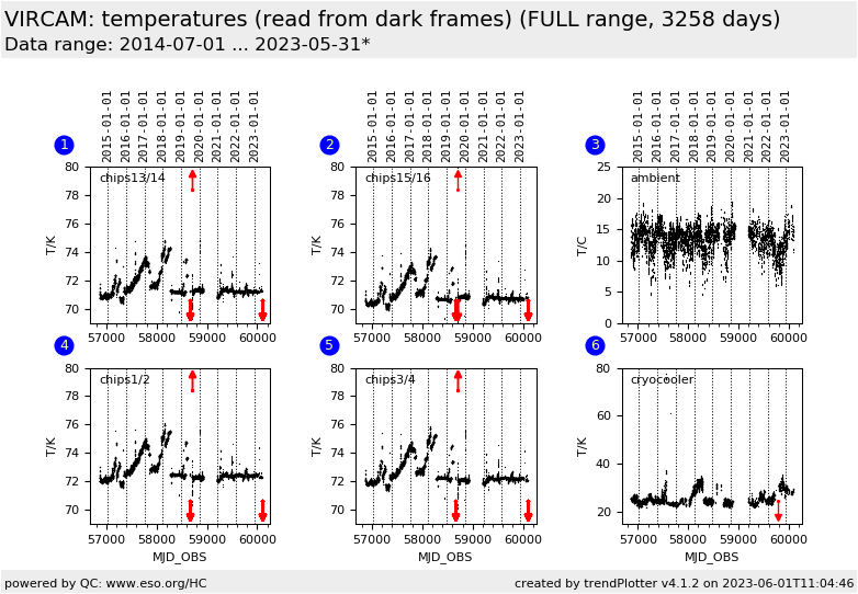 - "aliens" (= data points outside the plot Y limits) are marked by a red arrow (↑ or ↓)