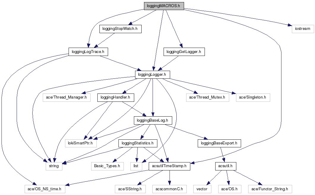 Used to send logs. This macro is primarily useful because it automatically determines the file name and line number for the developer. It is important to note that getLogger() is defined in a header file other than what's included above. UPDATE: I just included the file, don't know why it wasn't included before.