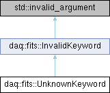 Inheritance diagram for daq::fits::UnknownKeyword:Public Member Functions | |