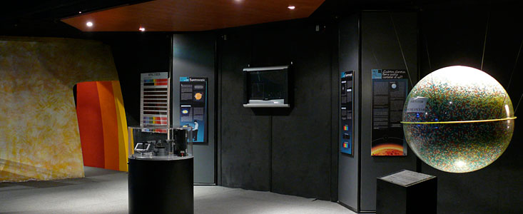 The exhibition includes different types of telescopes, such as the kinds used by Galileo and Kepler, a scale model of the Solar System, a heliostat to show sunspots, a scale to determine the weight of visitors on different planets and a special corner on archaeoastronomy and the observation of the night sky by native American cultures.