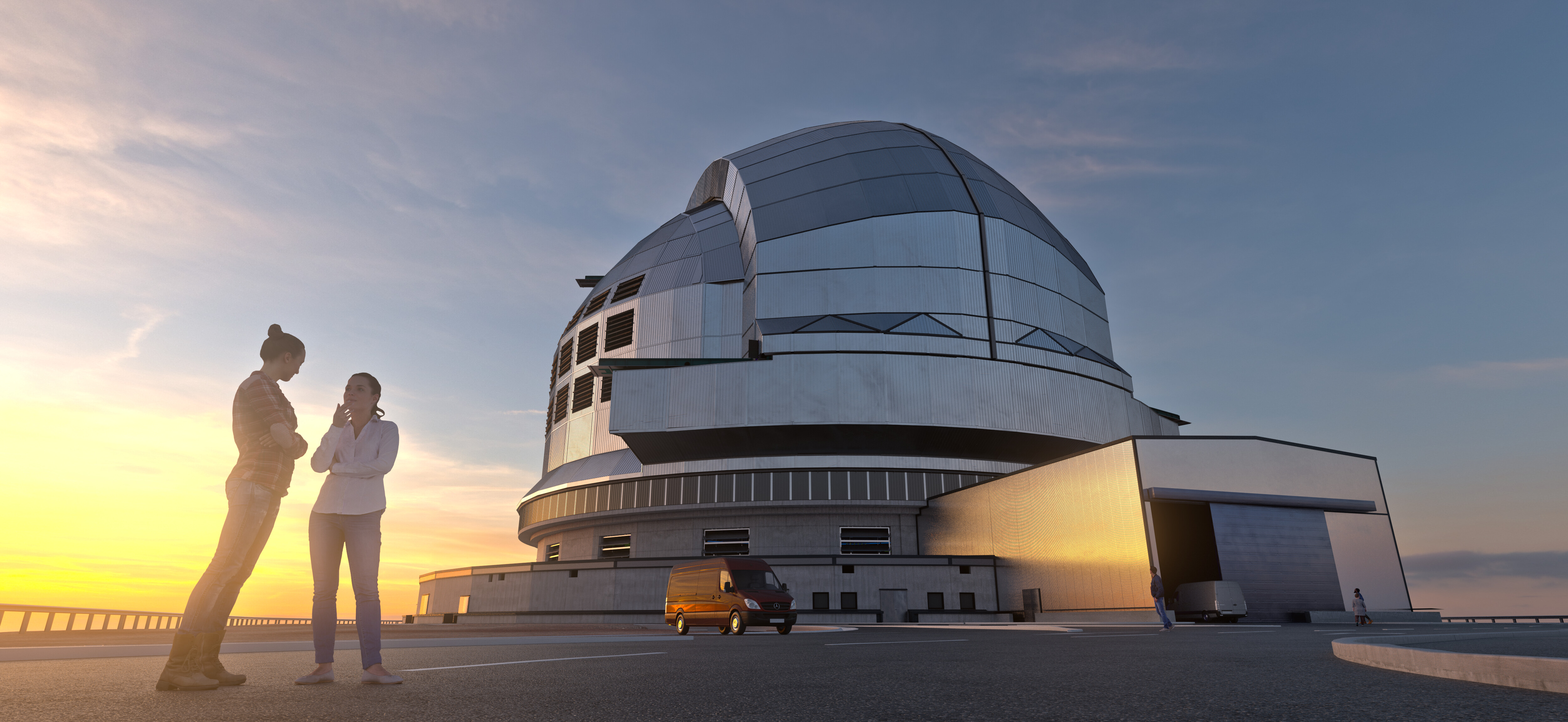 In the mid-2020s, the Extremely Large Telescope (ELT) will become the world's largest mirrored telescope when it finally sees first light with its enormous 39-meter main mirror. On-site construction began in 2014 on top of Cerro Armazones in Chile. The dome required to house this massive telescope will reach 78 meters in height and 85 metres across, with a planned weight of over 5000 tons. While still in its design stage, this 3D rendering shows the planned design of the ELT's dome. The two large sliding doors stretching across the top of the dome will open synchronously at night, allowing the telescope to gaze deeply into our Universe.