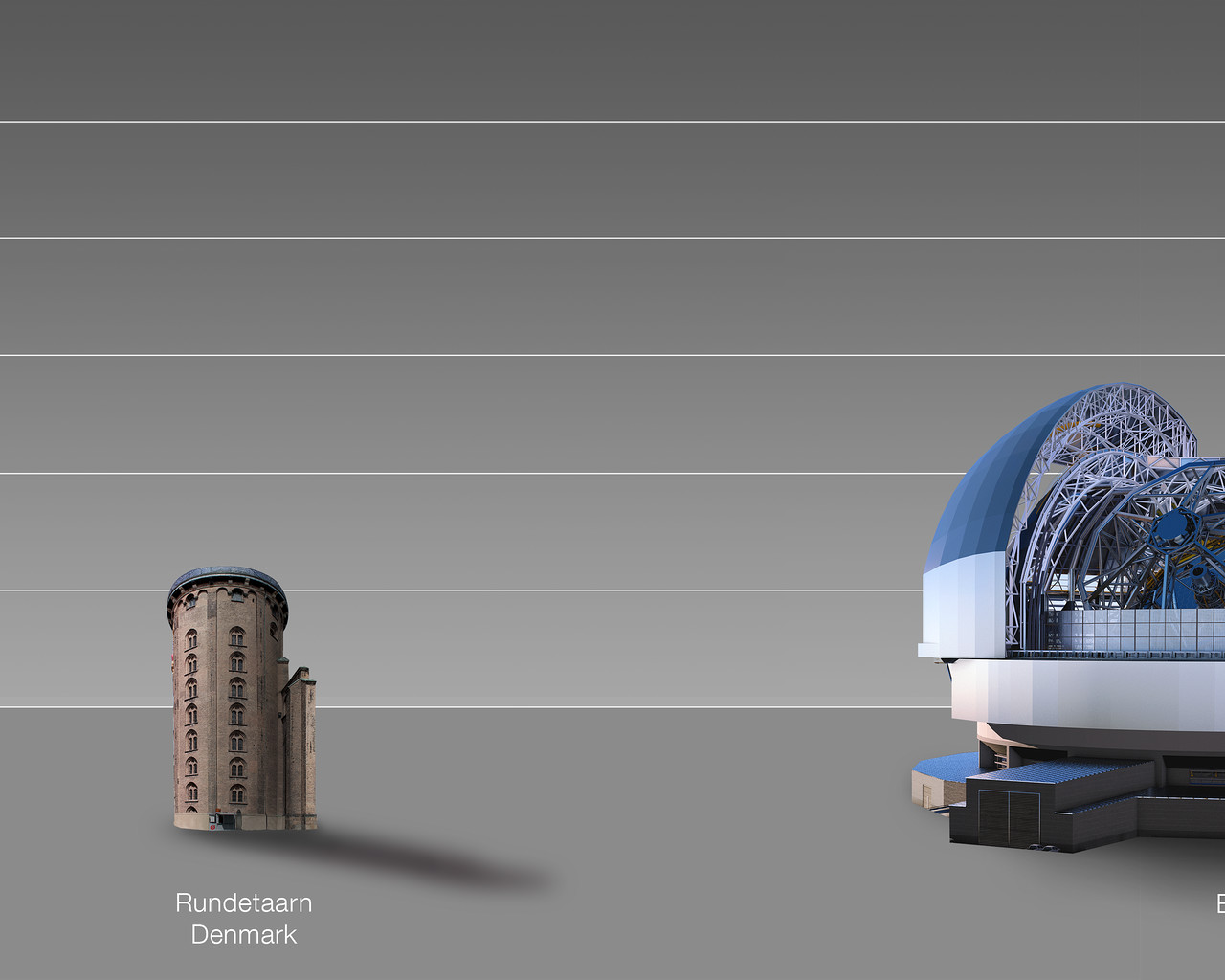 This artist's impression compares the ELT to the Round Tower in Copenhagen, Denmark.